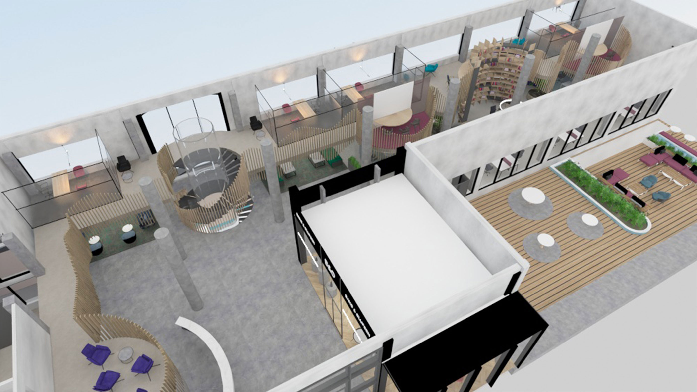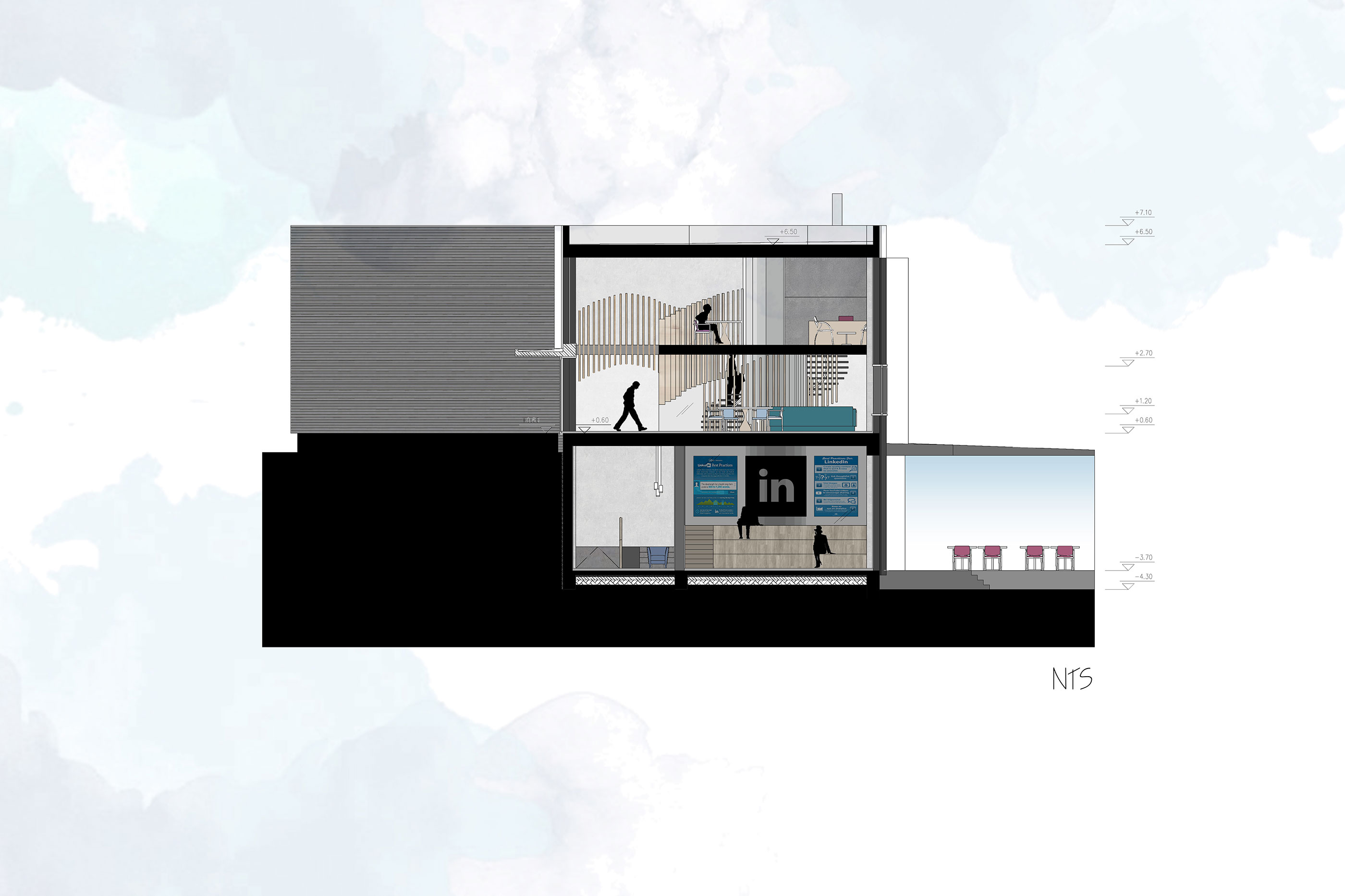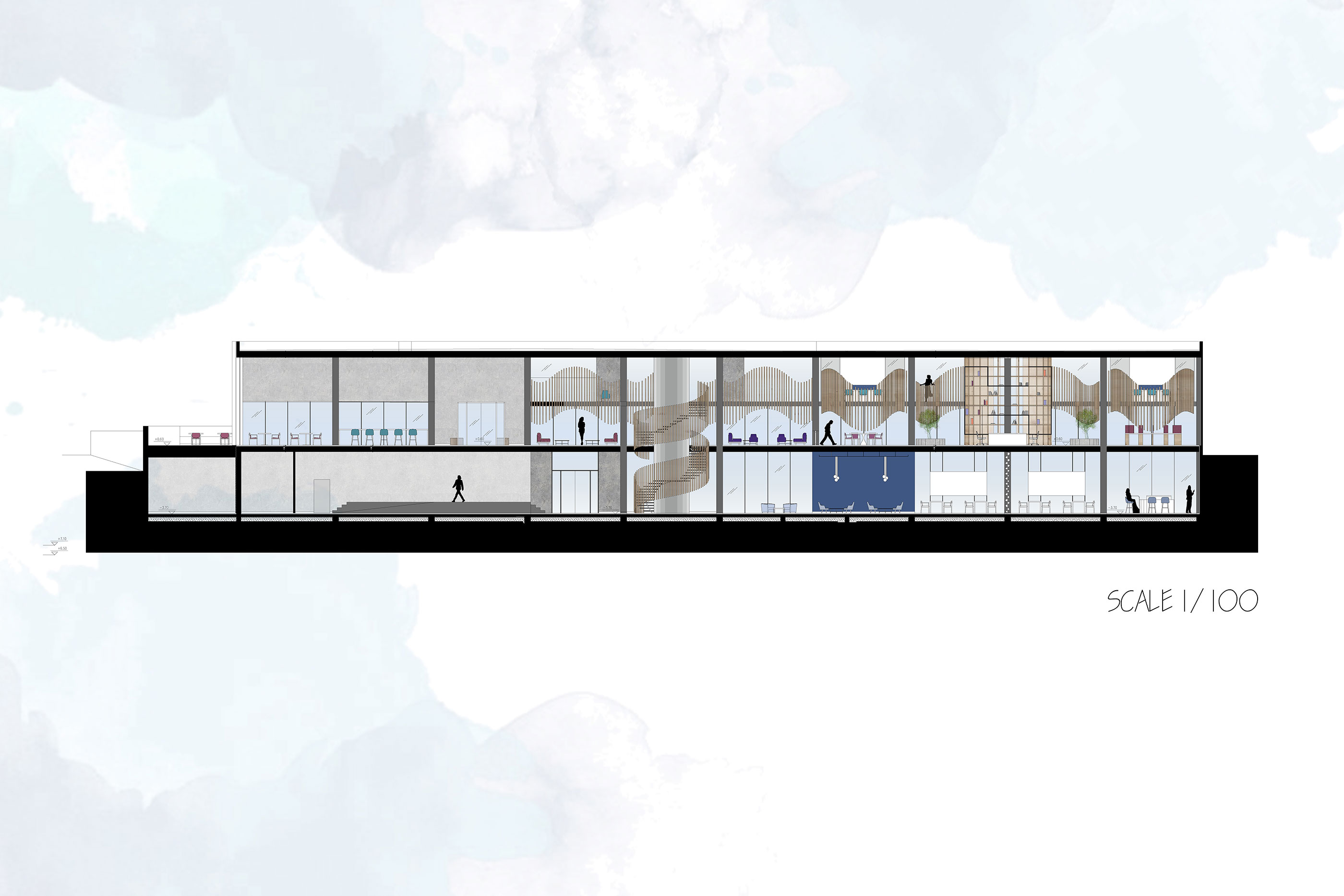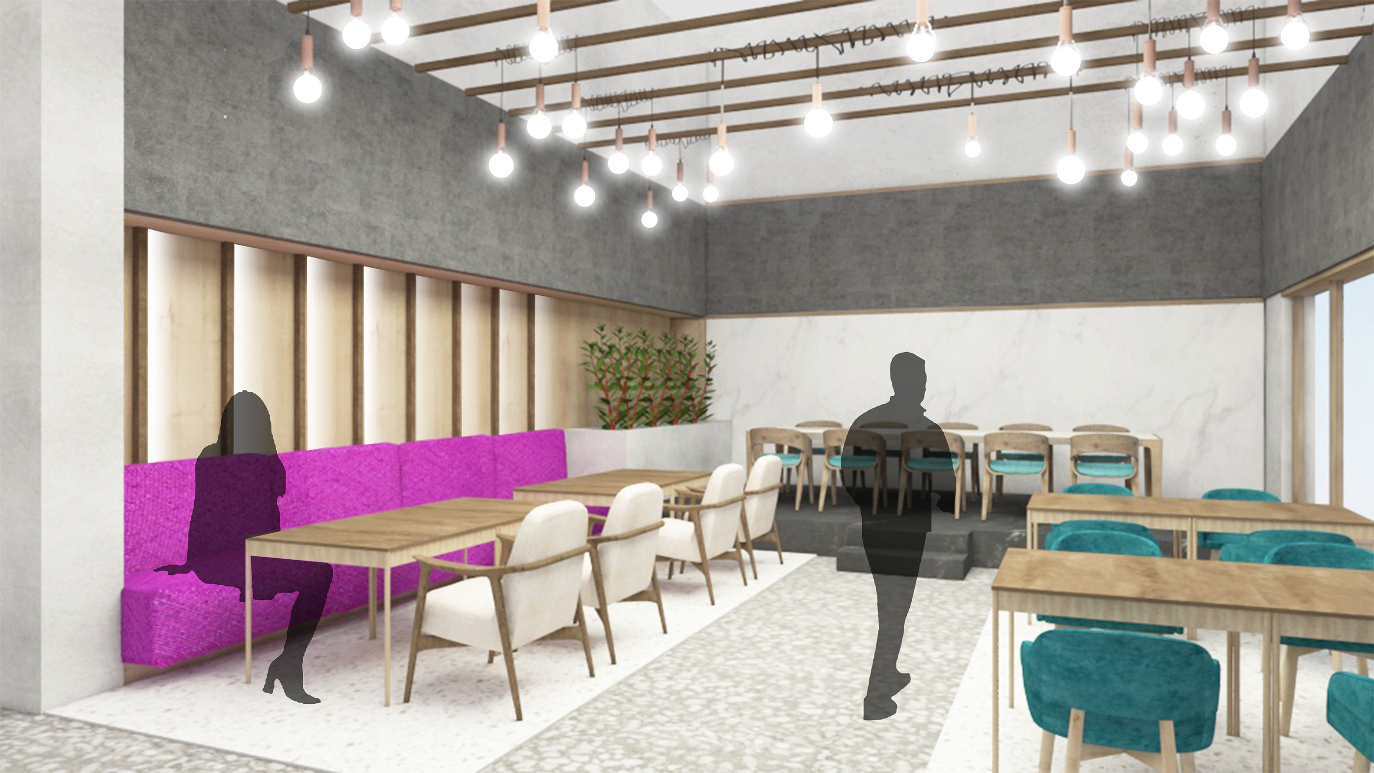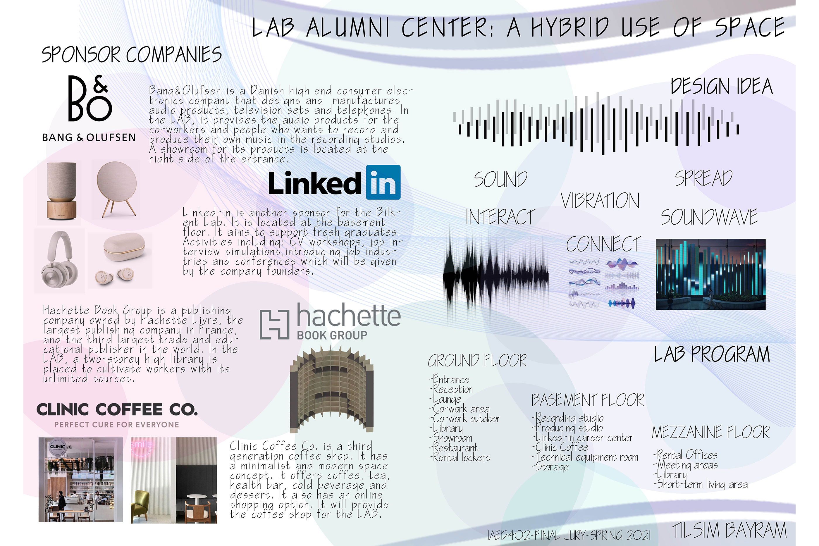 LAB Alumni Center serves different groups of people with an emphasis on Bilkent senior students, graduates, alumni and selected acquaintances. It is considered to be located close to the east campus of Bilkent University, right above/next to Sports International facility. It is a two-storey building with an area of approximately 1,800 m2. It is a multifunctional project where the aim is to think of functions as opportunities for people to discover and express themselves through their interactions with space that allows working, socializing, relaxing, hobby activities, etc. with hybrid use. A further consideration is to design against/with the pandemic wich may imply providing social distances, ventilation and screening strategies.