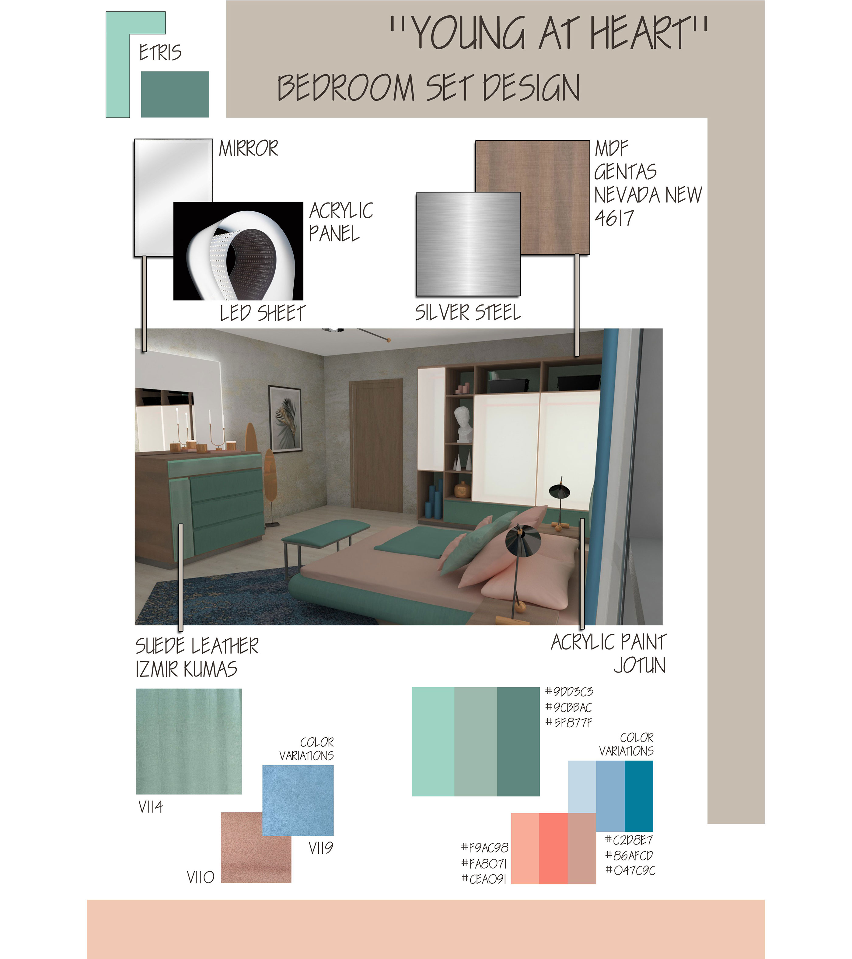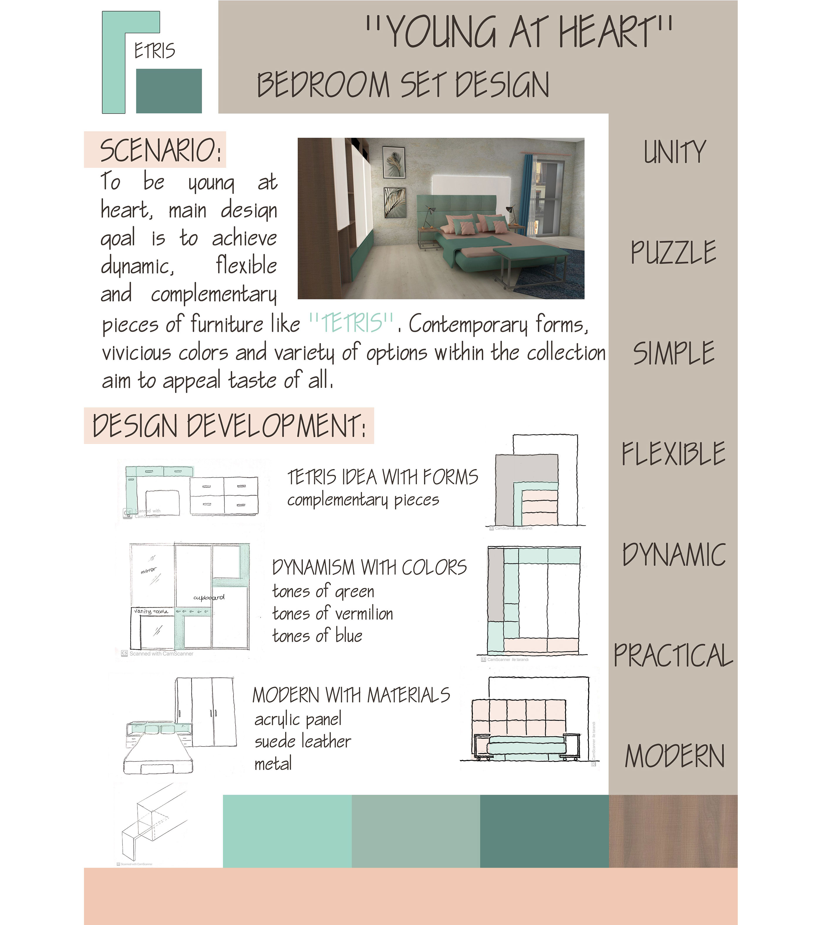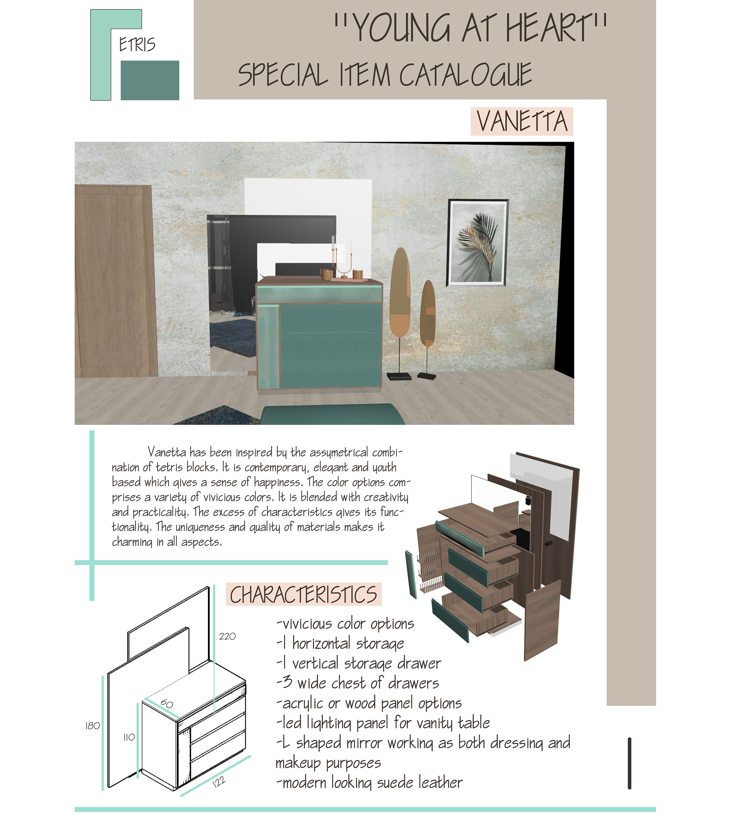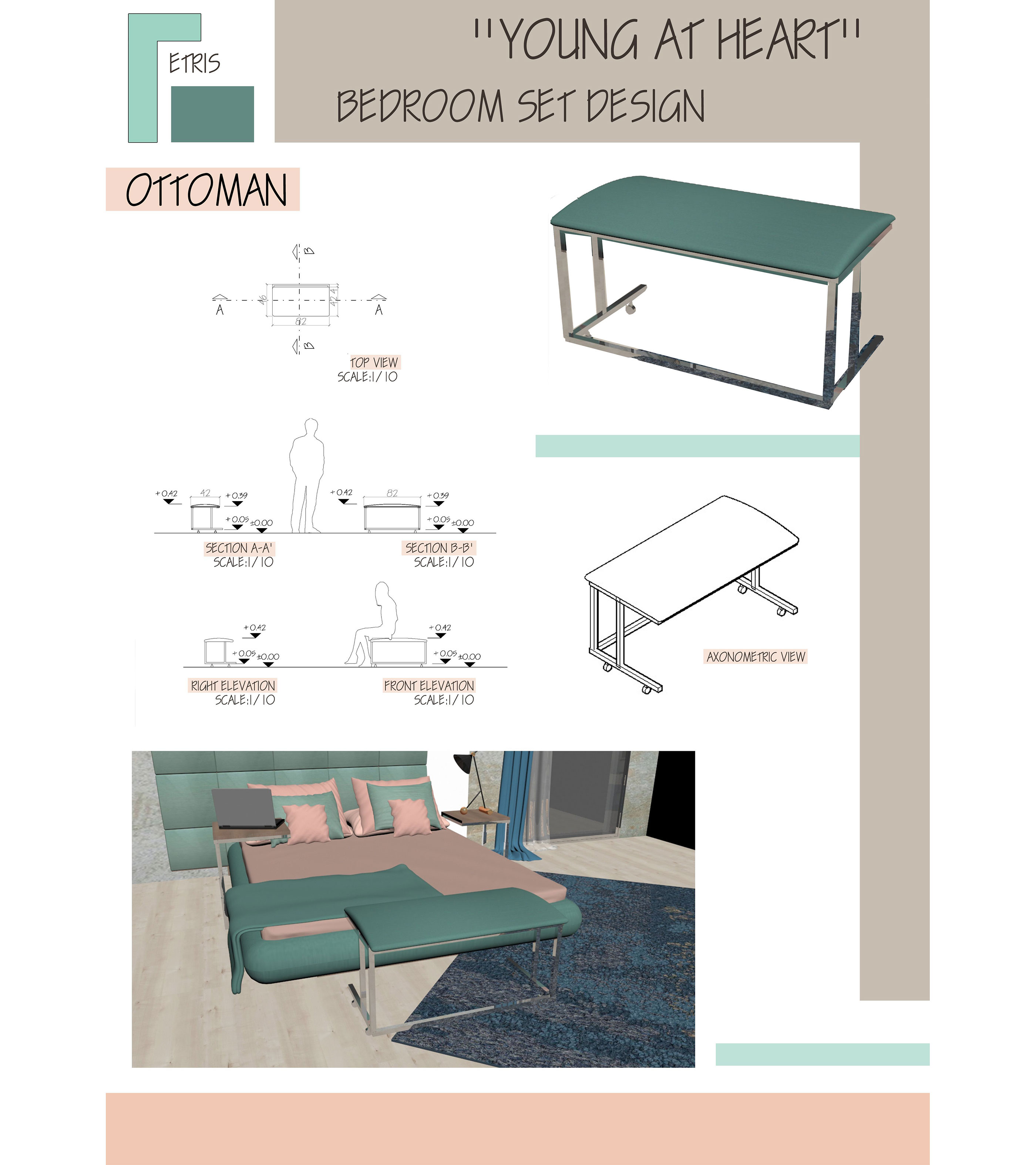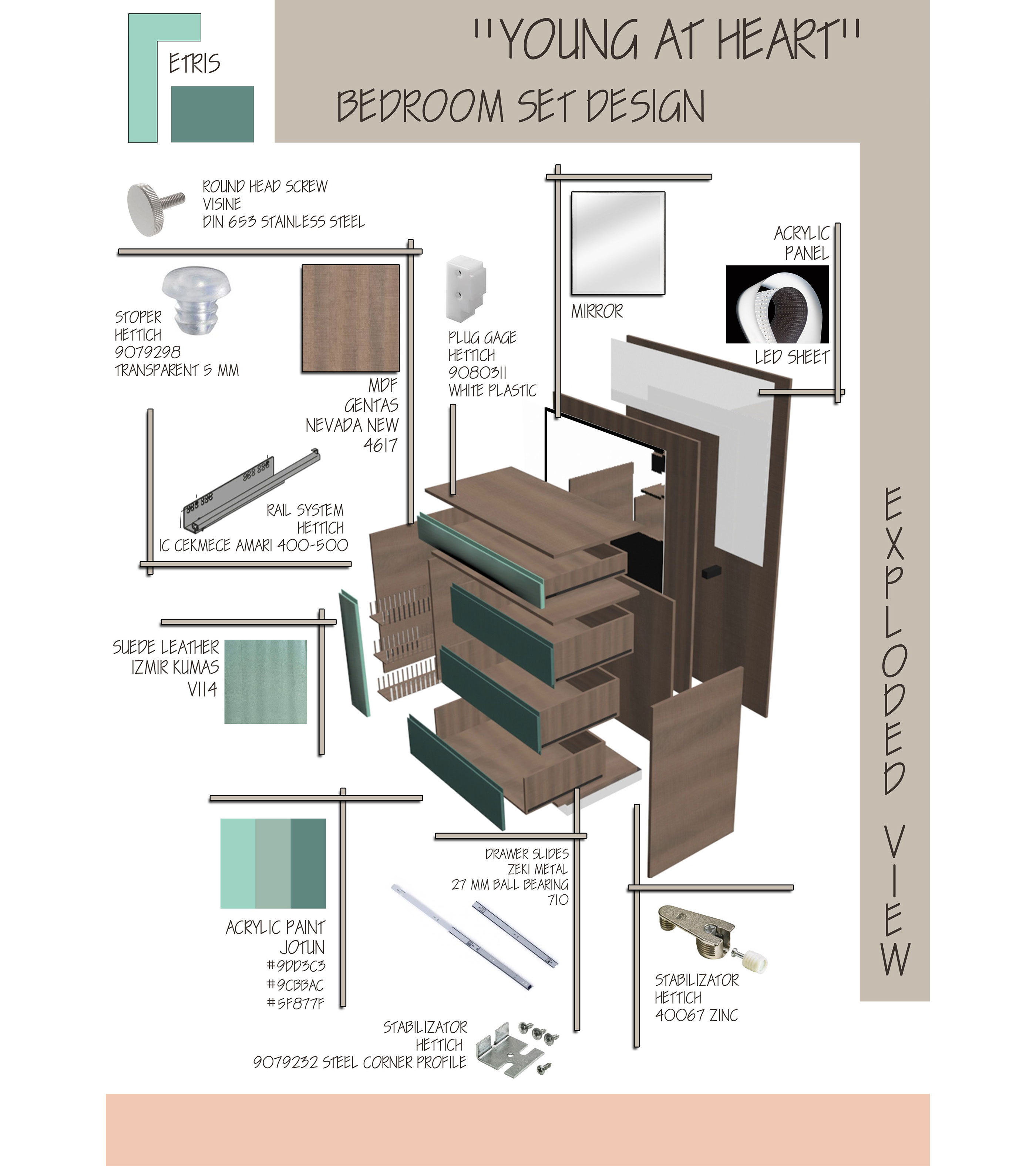 The aim of the project is to design the complete set of items that form a new collection for Tepe Home and then detail one of the items. Since it was a group project, we selected bedroom set design including bed, headboard, night table, chest of drawers, vanity table, ottoman and wardrobe.