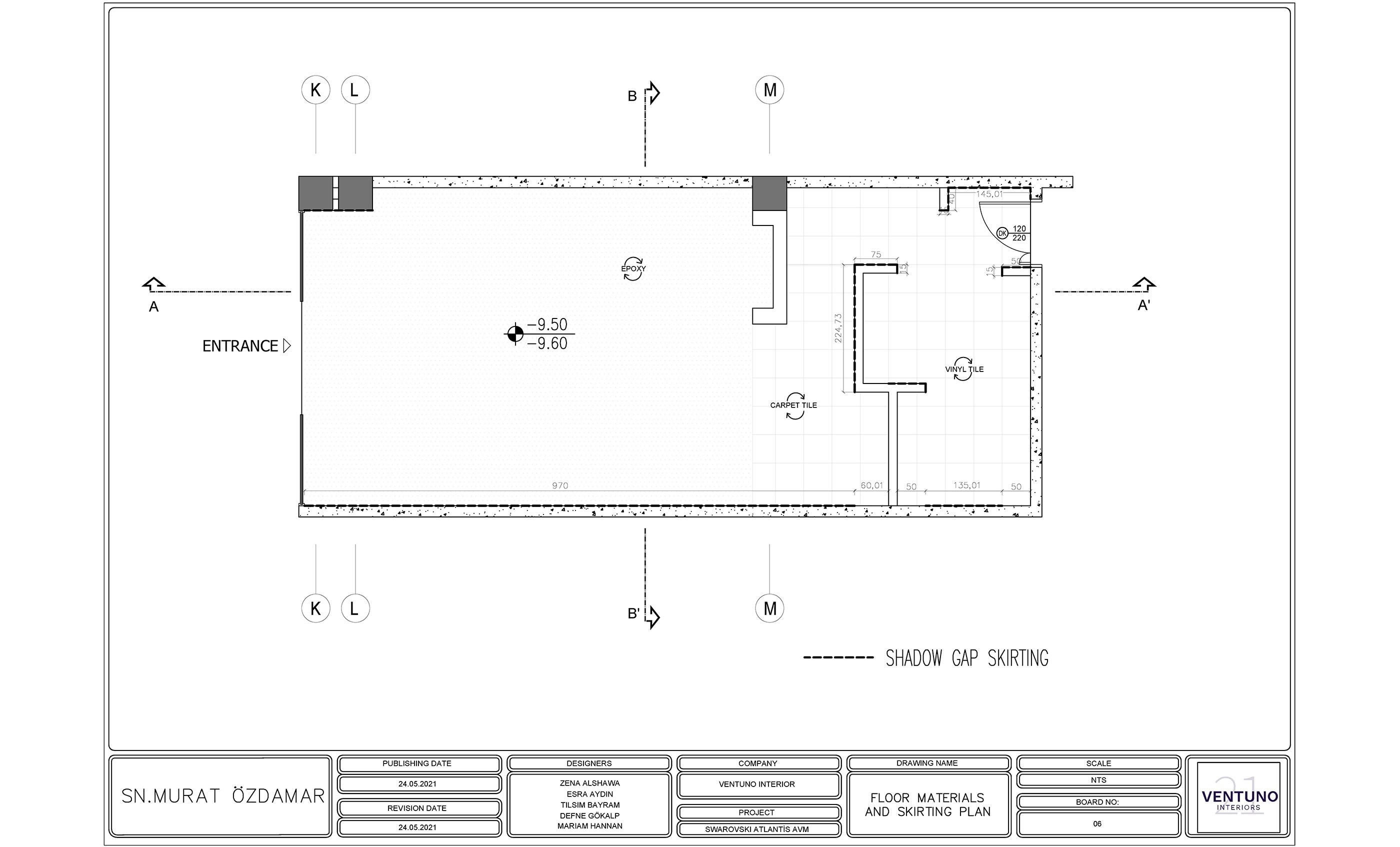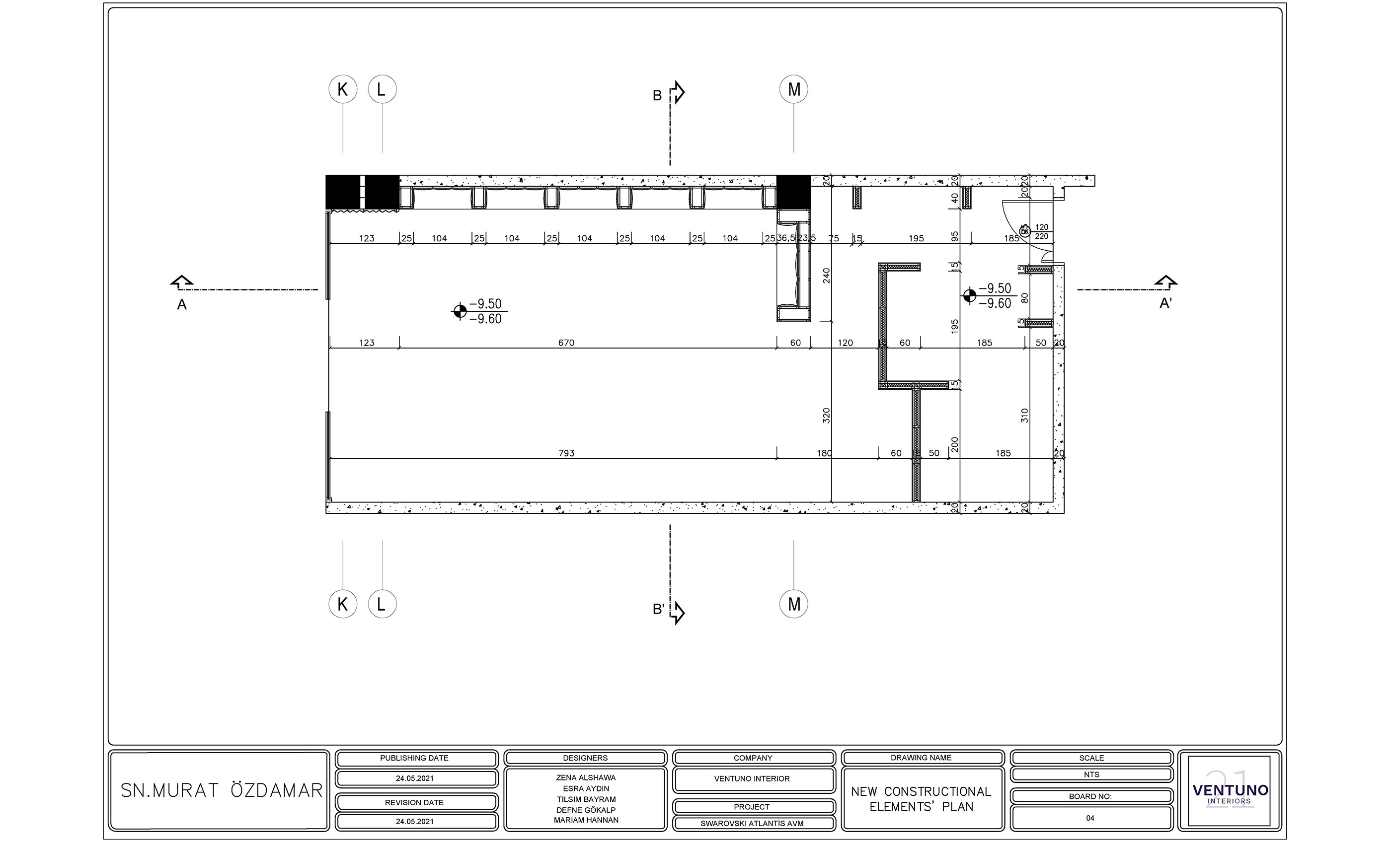 The project is about the interior architectural works of an Earring Store. It is located at Atlantis AVM with an area of approximately 72 m2. The project includes several plans, sections, elevations, quantity list, specification and a proposal. As a group, we selected Swarovski as the client for the design.